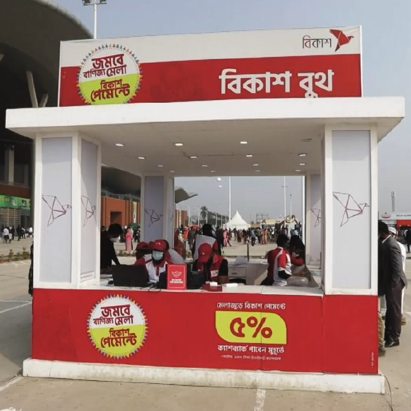 bKash is leading MFS of Bangladesh. Each year they participate in DITF to promote their offers and services. This year their objective was to promote bKash payment in DITF. To support the payment drive DITF bus ticket payment, entry ticket payment, parking ticket payment, account opening, app registration, cash in cash out and all other bKash services were offered. Besides, to engage customers there were blower game activity, photo booth and seating zone. bKash booths & branding placement in each visible area of the DITF was another KPI of this campaign. bKash brandings were visible throughout every visitors' journey from the very beginning to end